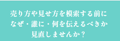 もしあなたが広めたい商品・ノウハウを届けたい人に売る方法が見えず行き詰っているなら、売り方で模索する前に、「なぜ・誰に・何を伝えるべきか?」から見直しませんか?