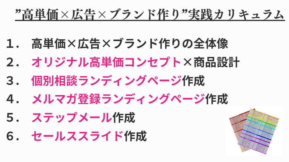 ①広告から集客して30万円以上の高単価で売れるコンセプトと商品を作って