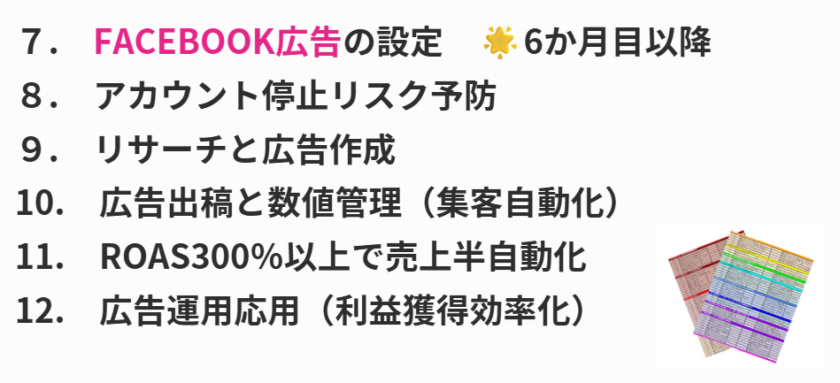 【商品作り】【しくみ作り】【広告集客】を最短で進めて、一年以内には望む成果がでるようにまとめました。