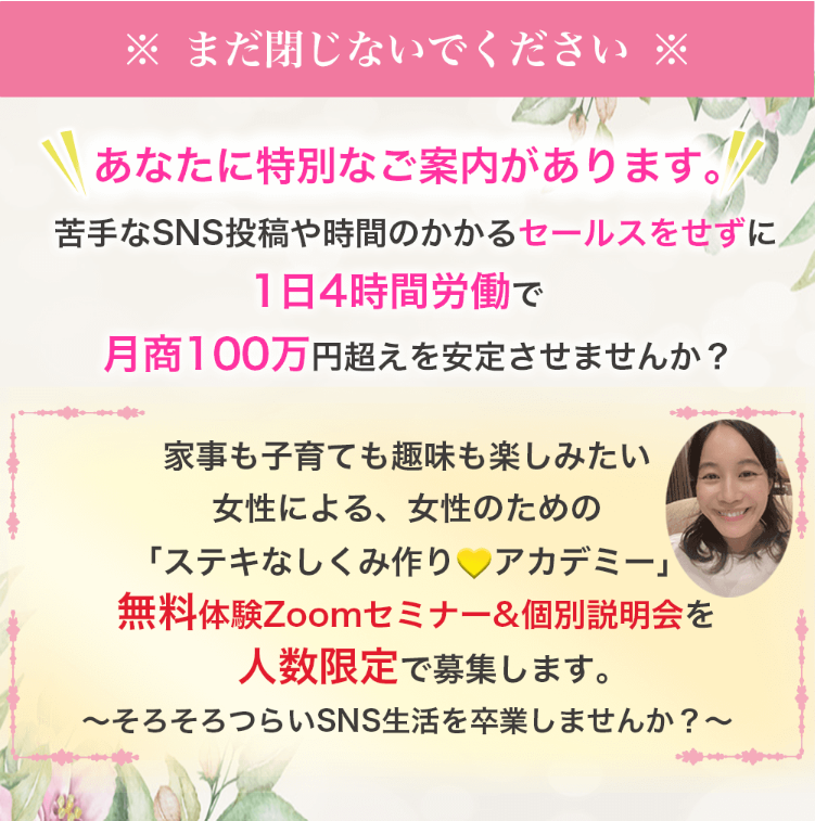 一日も早くSNS投稿ではなく、Web広告から売れる仕組みとスキルを手に入れることをおすすめします。